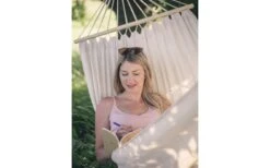 Hängematte aus wetterfestem und UV-beständigem EllTex-Material, extra haltbar und doch kuschelig wie Baumwolle.