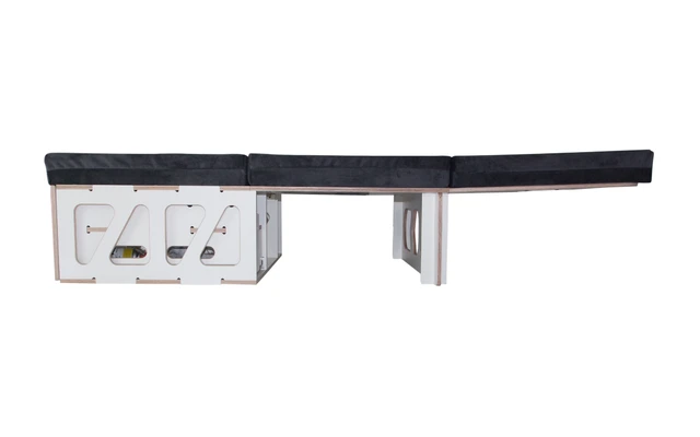 Das Set umfasst 12 Füße (15 mm hoch), mit denen die Box reguliert werden kann, wenn die Sitzgruppe über den Boden ragt.